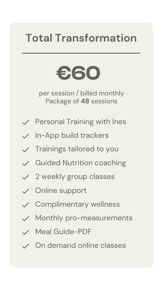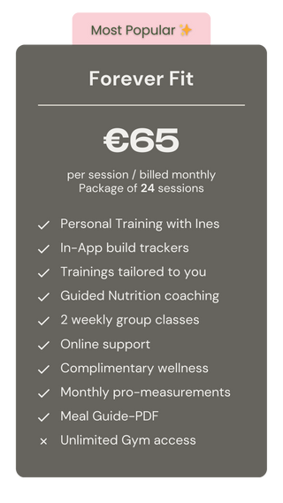 Hi, I’m Ines, founder of My Body Pursuit and your personal trainer with over 8 years of experience. Specialising in womens hormones, pre/post natal and hybrid training. My mission is to help women feel strong, confident, and unstoppable through personalized fitness programs. I believe fitness is about building a lifestyle that empowers you inside and out. Let’s work together to achieve your goals and unlock your best self!